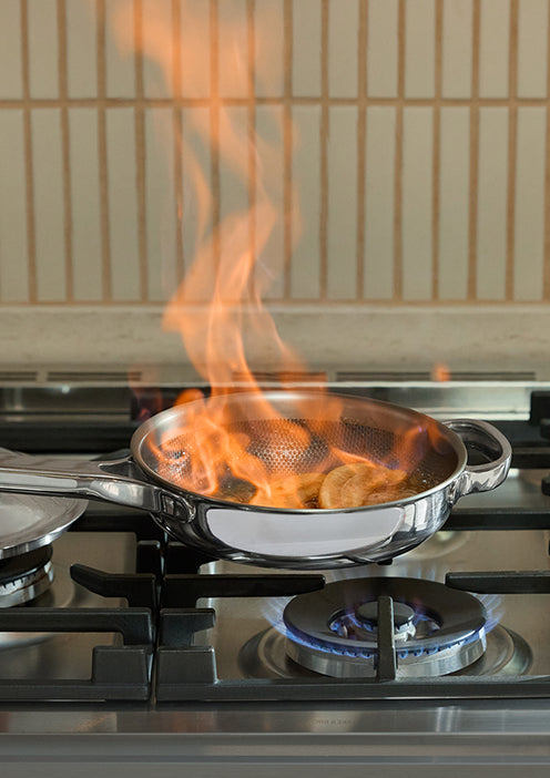 The Titanium Pro Cookware Set excels at searing, flipping, deglazing, deep frying, and so much more. Think: pan-fried potatoes, a perfectly seared steak, crispy fish, morning omelettes, creamy pasta dishes, and so much more.